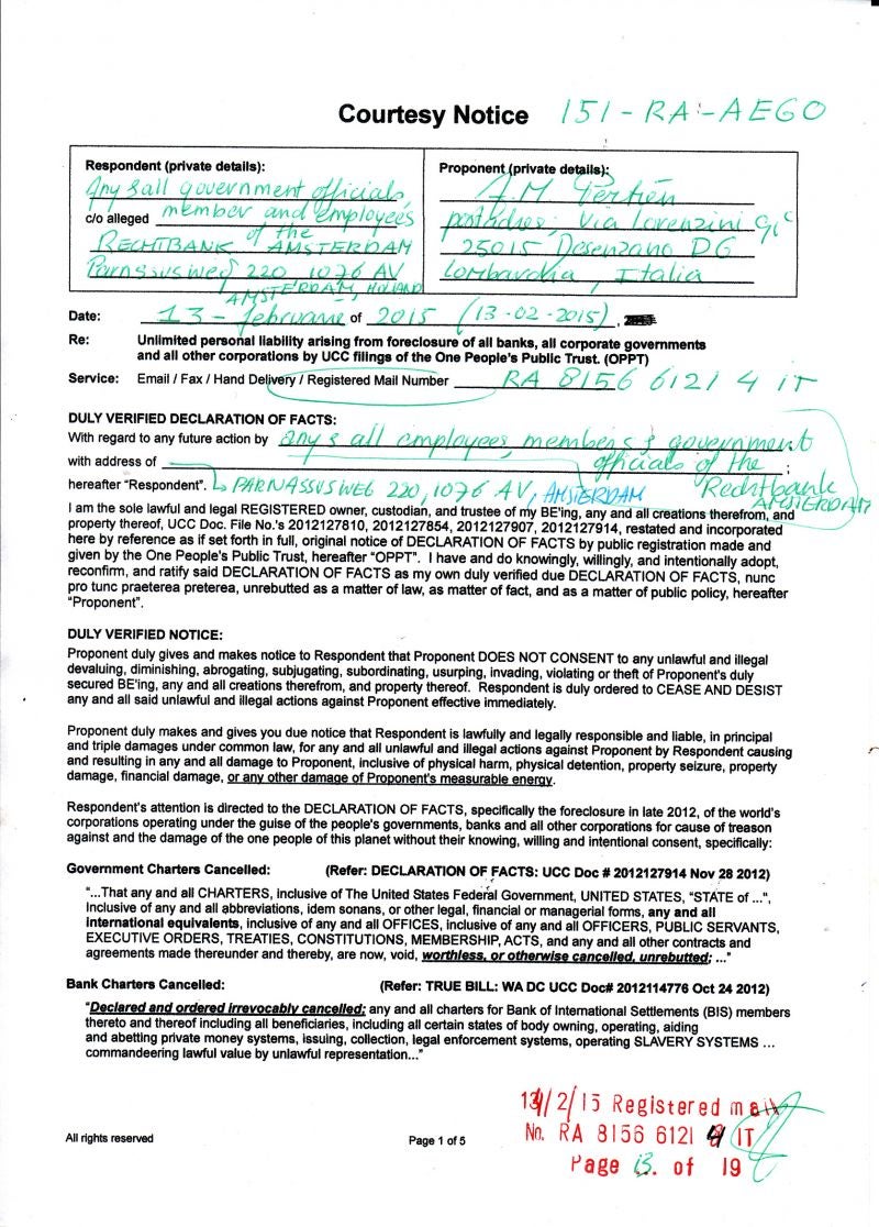 Take Due Notice of my Public Declaration of NON-Consent !