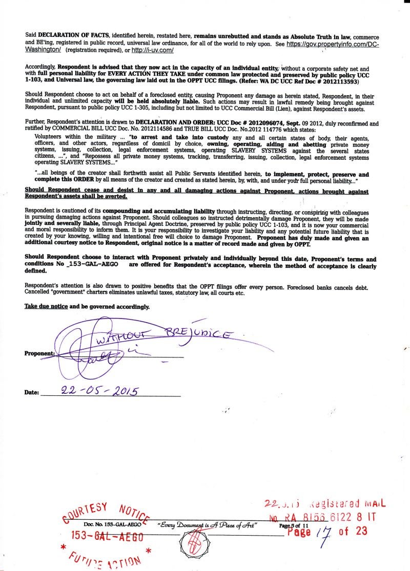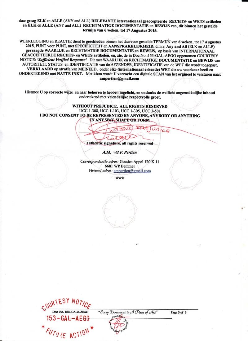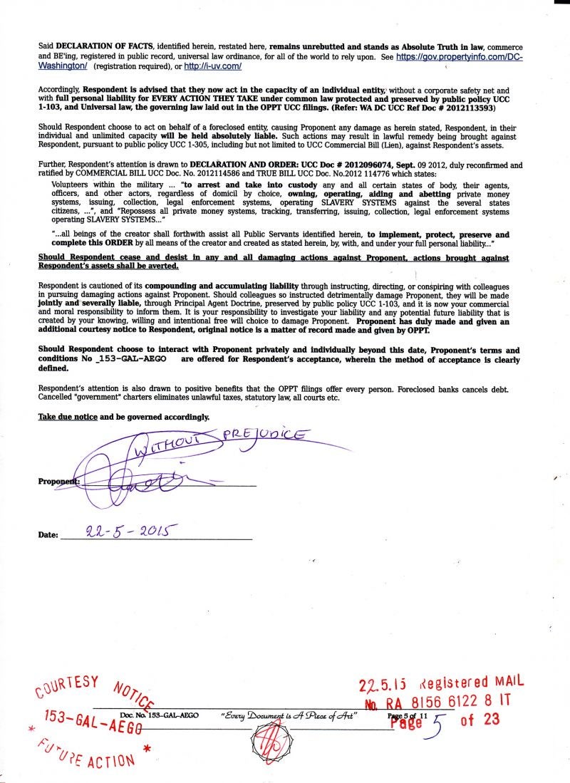 Take Due Notice of my Declaration of NON- Consent !